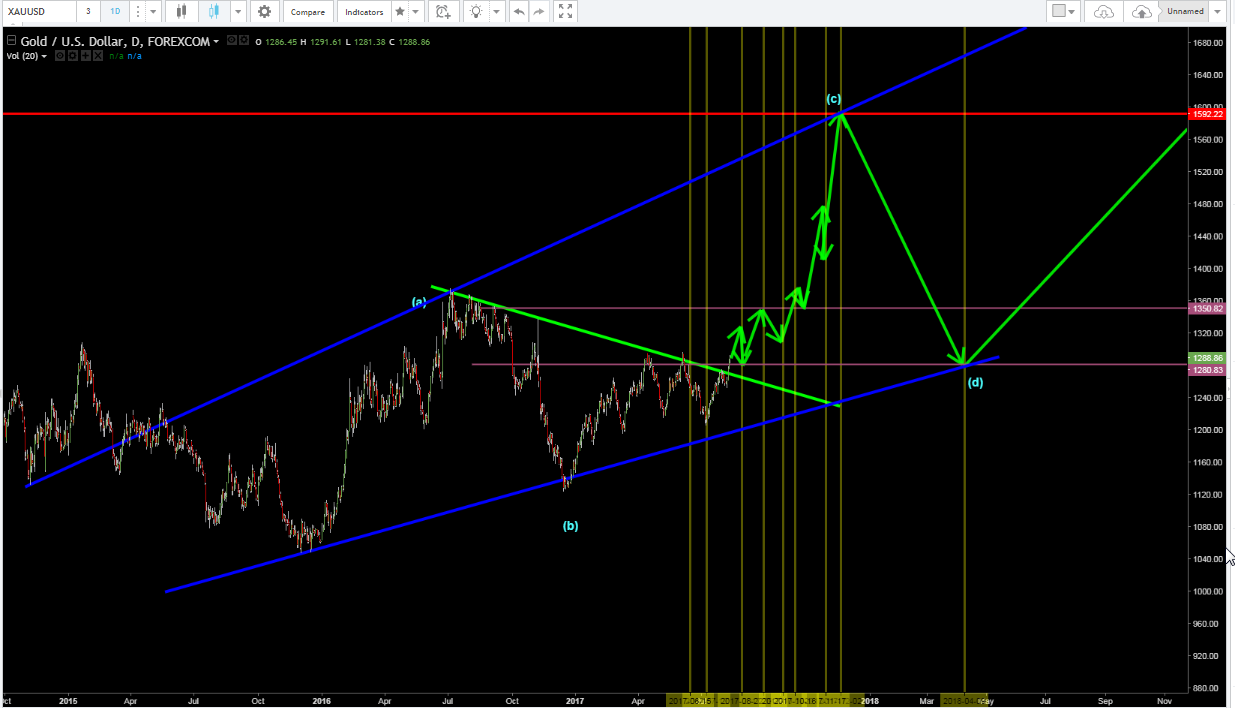 My projected bullish pricepath in gold. Topping out at 1592 the 2nd of December.