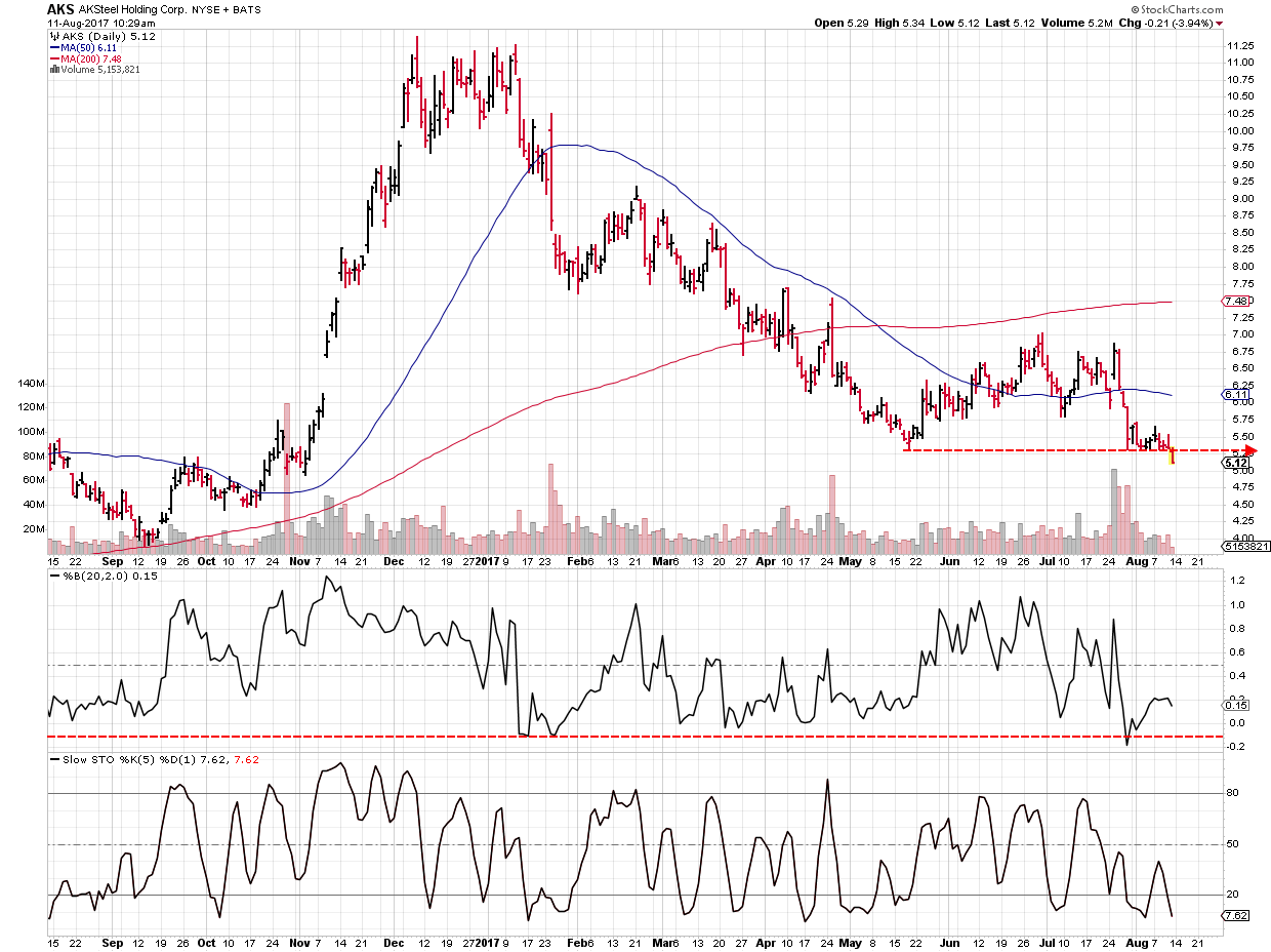 AG – Ag looks like it may be trying to recover now too. AG was a fan favorite in 2016. Many loved this Silver Miner, but with that sharp drop from the top, and then a recent break, people are saying, “Miners are too risky and even some of the good ones are being thrown out.” Well for the patient ones, a recovery of this break down would be a possible ‘shake out’. IF you wait and buy this at $8, will you be sad when it trades at $24? Sure, $6 to $24 is over 300%, but $8 – $24 and 200% plus in your account is a great feeling too, right?