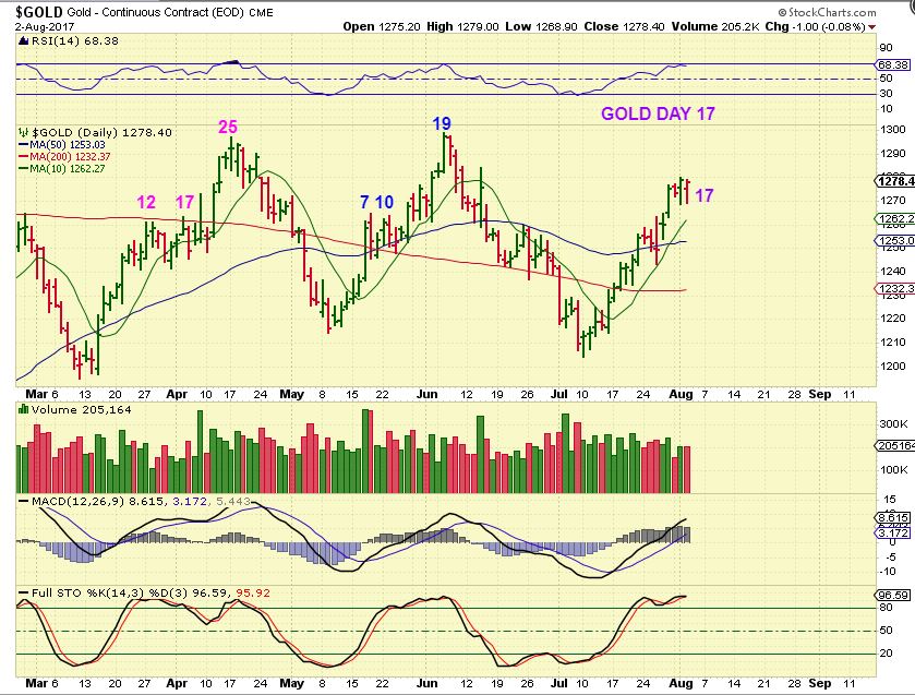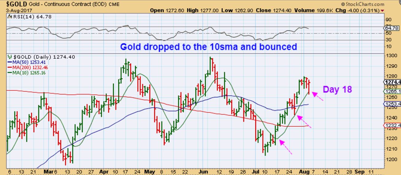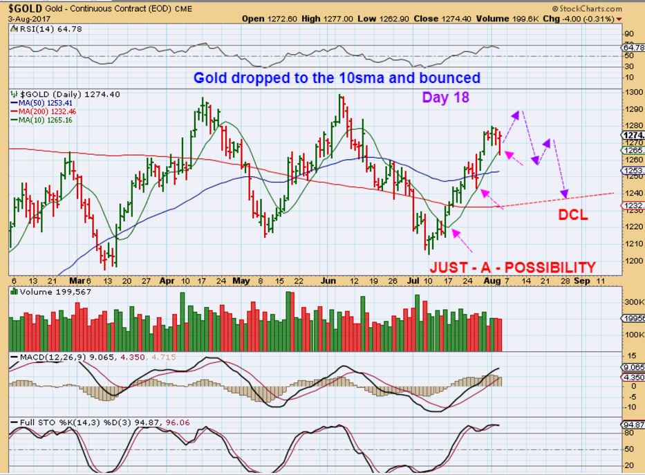 GOLD – Yesterday on Day 18 Gold tagged the 10sma and then moved higher again. There is one thing that I have found interesting about this run in Gold. Look at that chart from JULY 10 to now and you see a move that is almost straight up. I cannot remember when I have seen Gold move steeply higher like that, and yet see so many people nervous about it all the way up. This has been a nice solid run above the 10sma.