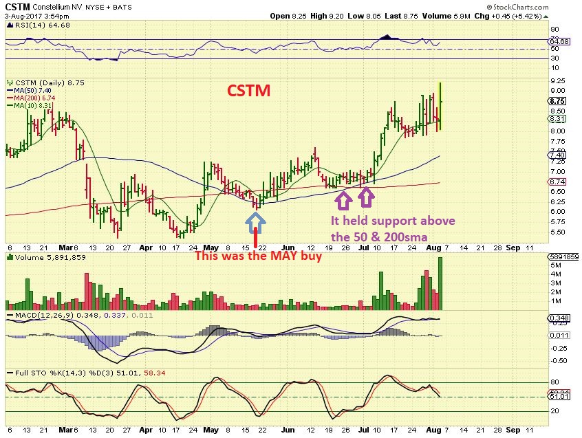 The last chart in this report – CSTM – great follow through today – I no longer own it 🙁
