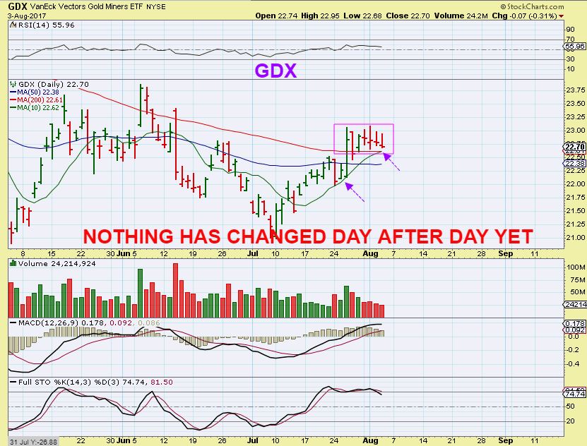 As of right now, we have 1 excellent. 1 pretty good after a drop , and a 3rd one is weak & ugly. I will watch for the ugly one to strength or the middle one to weaken – either could affect GDX.