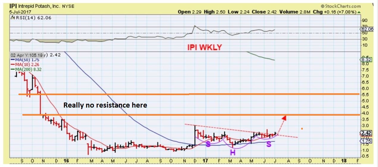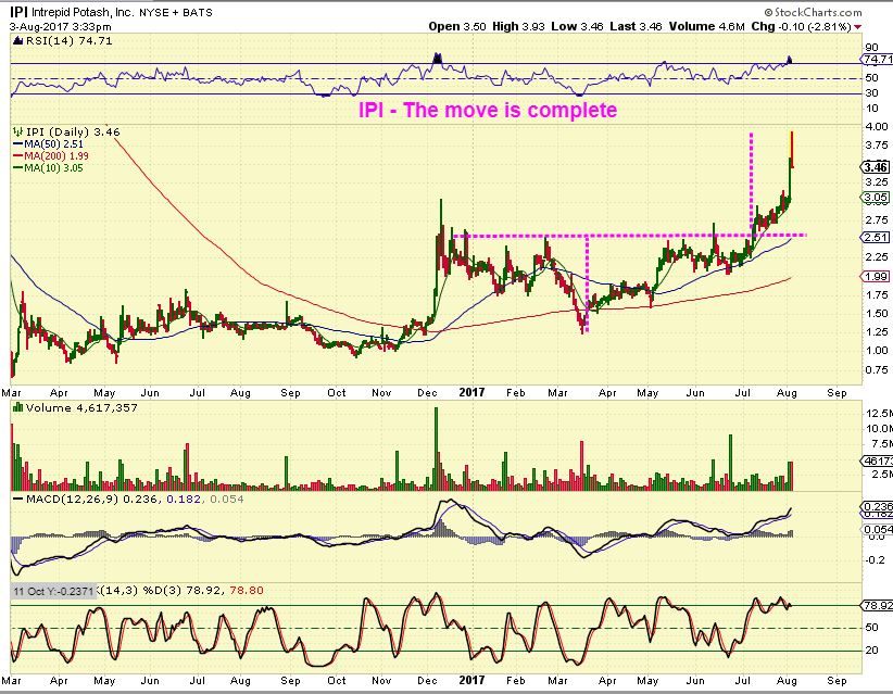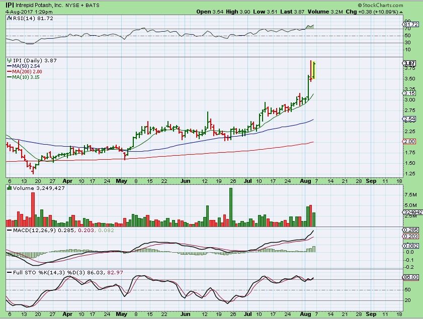 IPI and the follow through is exactly why I didnt sell everything yesterday. If I did sell everything at $ 3.75- $3.80, I would be looking at this chrt today and saying, ” If I buy back here, it could drop next week to the break out. If I Don’t buy it here, it will run to the $5 area because there is no resistance”