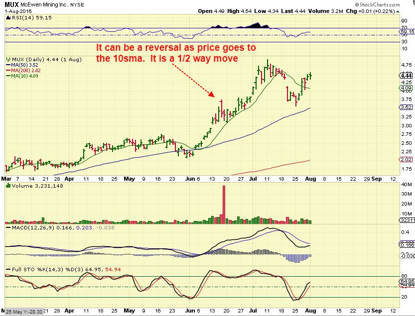 EXAMPLE: I AM SIMPLY SHOWING HERE THAT ON THE 2016 RUN HIGHER IN MUX- I GOT A REVERSAL CANDLE AND TOLD MY SUBSCRIBERS THAT I SOLD 30% ON THAT REVERSAL DAY AND WOULD RIDE THE REST. YOU CAN SEE HOW THAT WORKED OUT WELL, I ACTUALLY ADDED THAT 30% BACK IN A WEEK LATER.