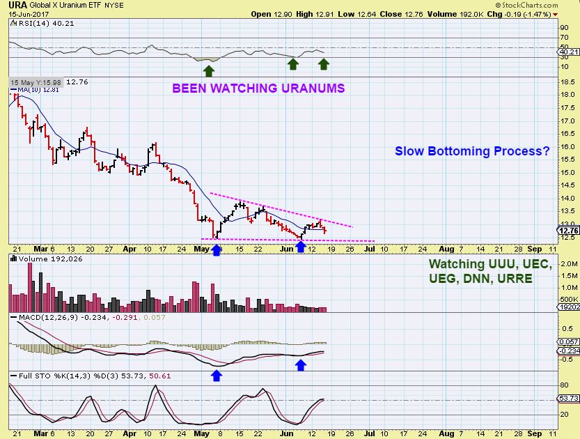 URA – I wanted to look at a sector that we covered a few times over the last few weeks. We were looking for Uranium to bottom, and watching Uranium stocks too. A double bottom formed and a triangle was shaping up too.