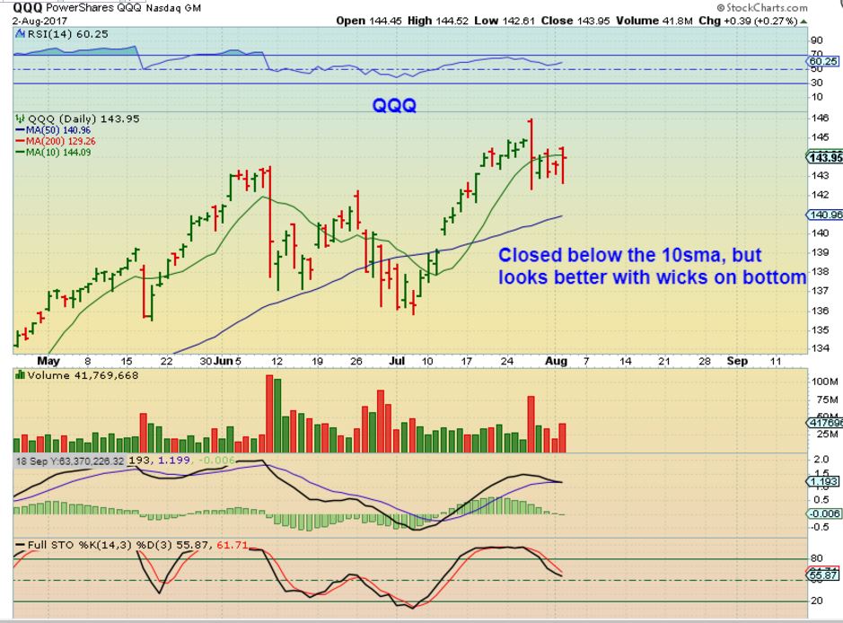 NASDAQ – The NASDAQ is still under the 10sma, and is showing ‘tails’ over the last few days too. In June the NASDAQ only showed a small 4 days pop and then continued lower into a dcl.