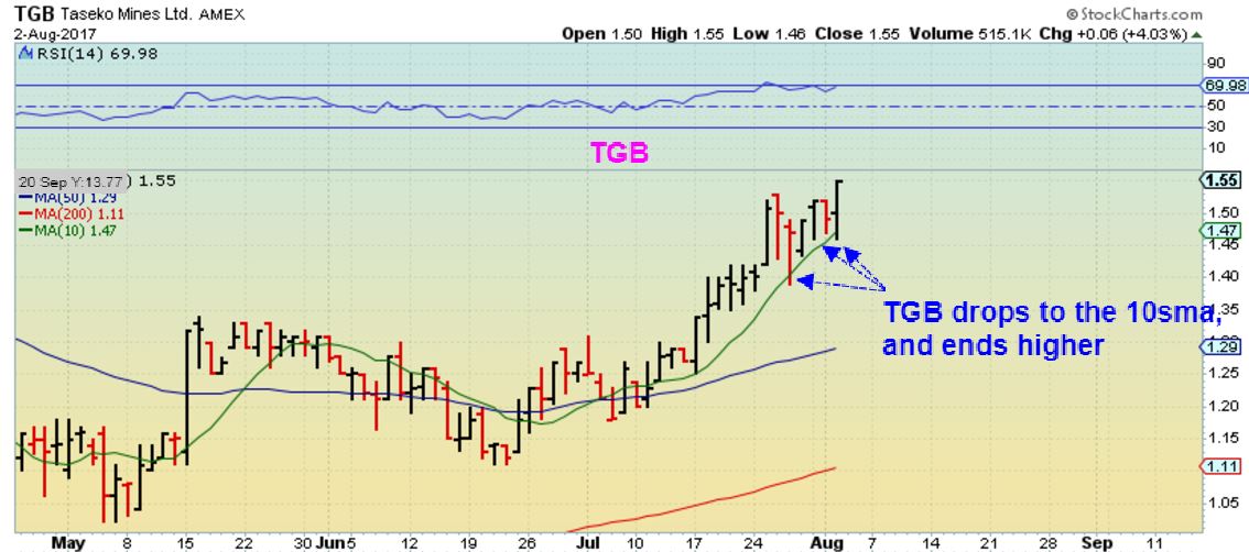 TGB – Started to pop out from the sideways consolidation, and then released earnings after the bell. It was up 10 cents more in After Hrs, so this may continue higher today.