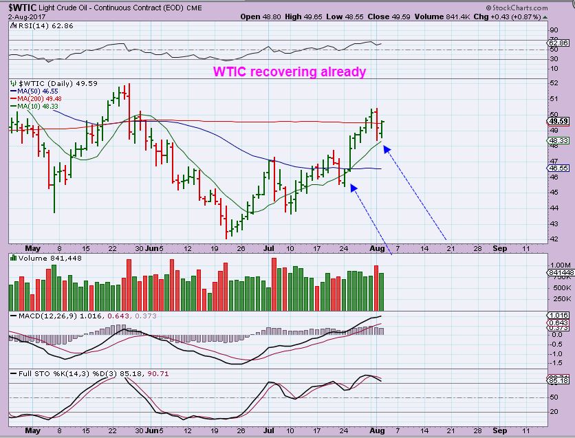WTIC – In Yesterdays report I said that OIL dropped , but I was not concerned. Maybe we would just back test the 50sma? Another point was that the XLE barely flinched as Oil dropped.