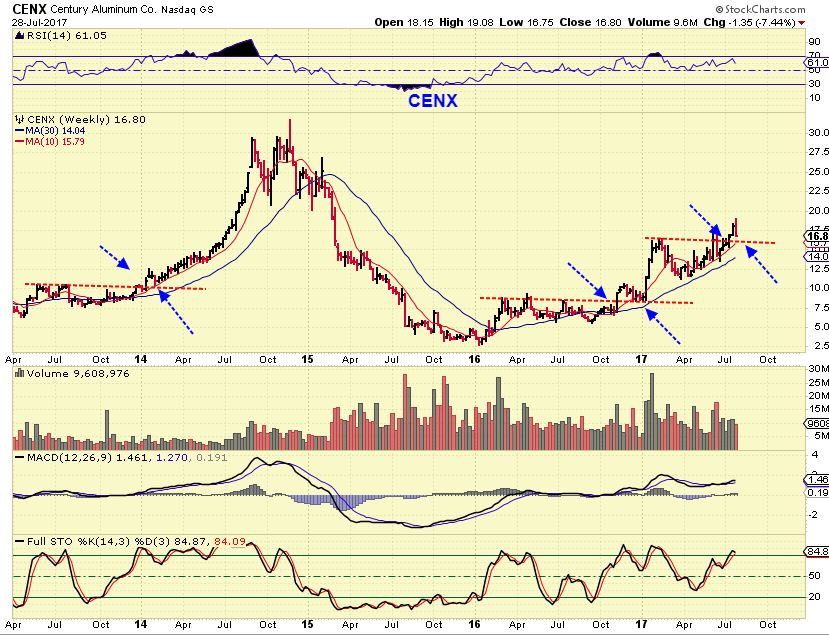 I was asked about CENX. It is a bullish chart, climbing, consolidating, climbing and consolidating.