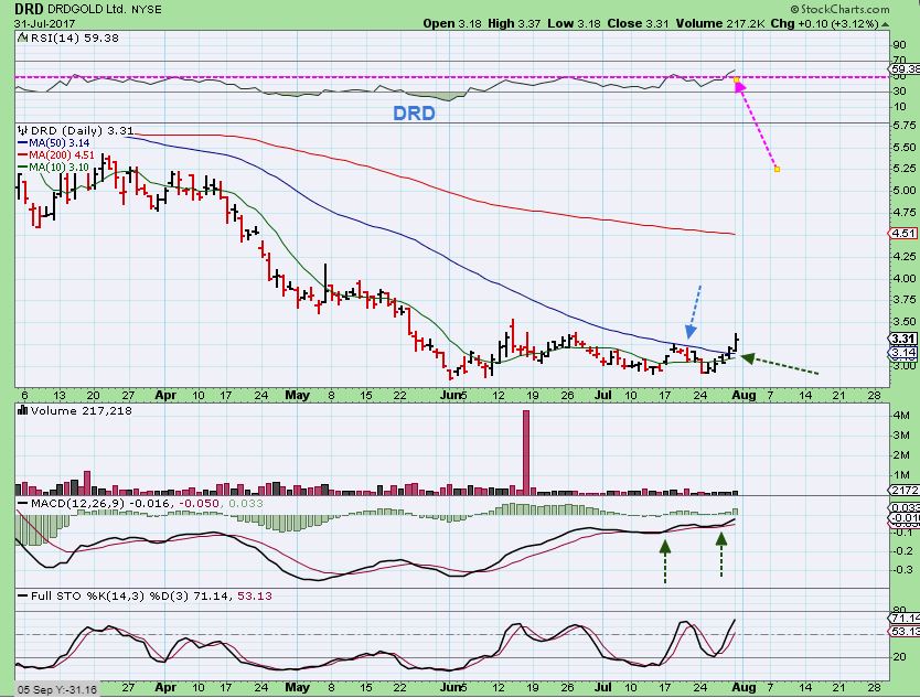 DRD – I pointed this out DRD was still at the lows last week. CAN DRD BREAK OUT ABOVE THAT 50SMA?