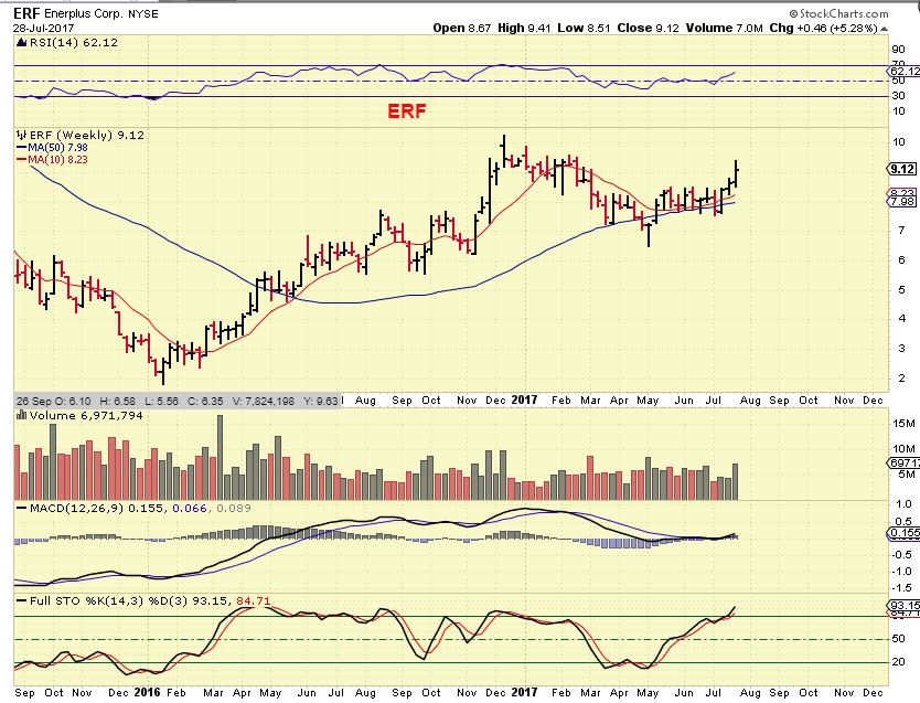 ERF WEEKLY – Energy from the weekend report. It dropped to the 10sma today and bounced back up. Look how it steadily rode along the 50 ma weekly, while energy was being sold off. To me that means that this stock is a leader & bullish.