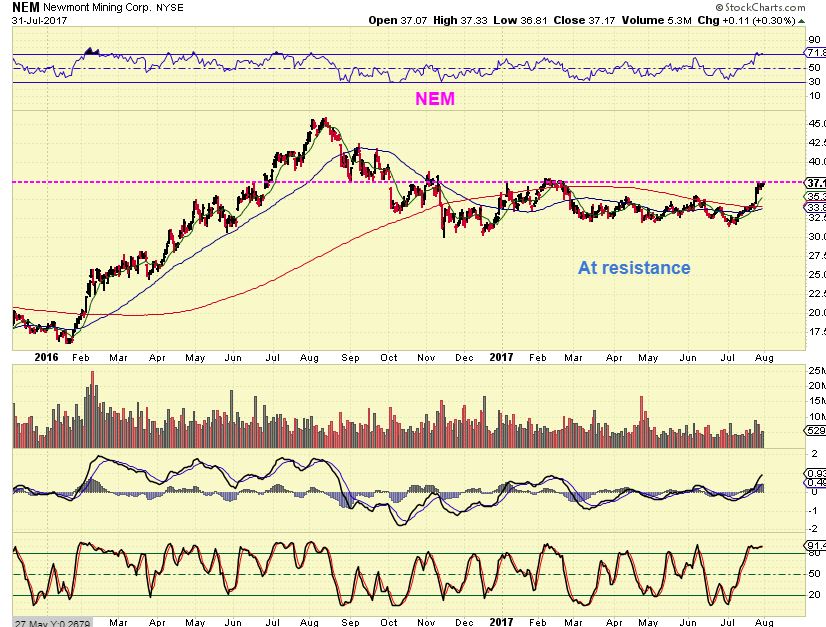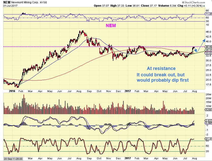 NEM #1 – NEM is at resistance. It could just break out if Gold moves higher, or realistically, it also may pause before breaking out.