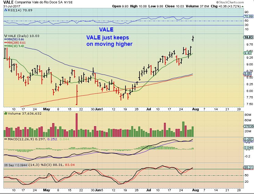 VALE #1 – Vale gapped higher and continues to perform well.