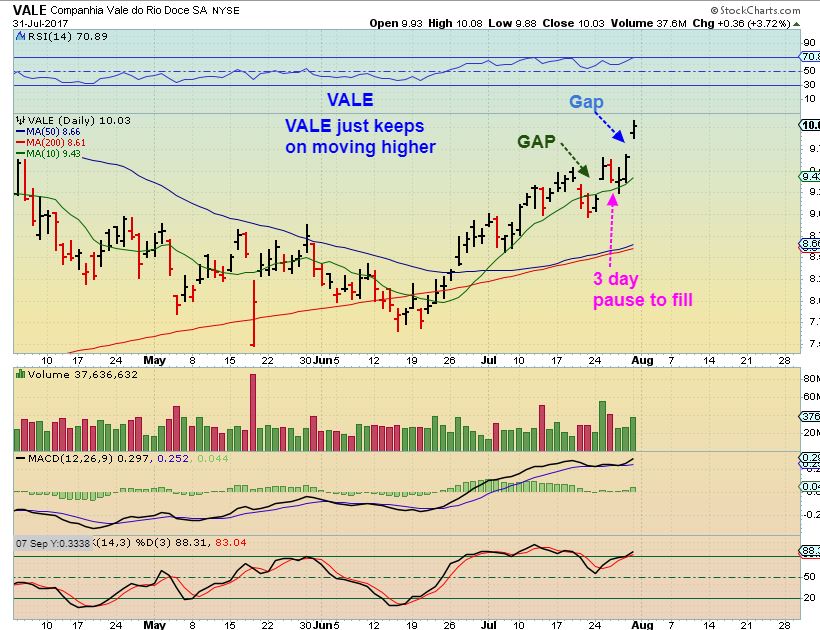 VALE #2 – Vale gapped last week too, and played out like this filling the gap. If VALE does a gap fill again, that may be a nice place to buy or add to current positions.