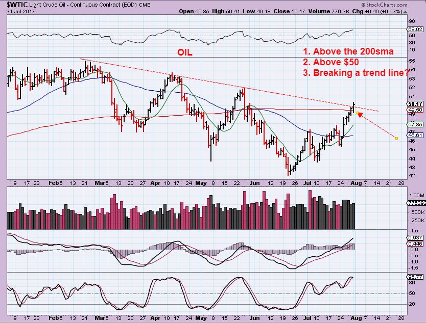 WTIC – Oil continued higher, and the XLE remains above the 50sma and above the break out of the down trend line, so Energy is looking more & more bullish. Well, Except for…