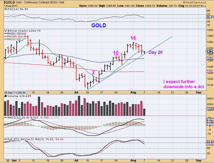 2. Gold could pop & run for a couple of days and put in a peak on day 24 or so, and then drop into a dcl. Either way, I do not expect this to run away with the USD bottoming.