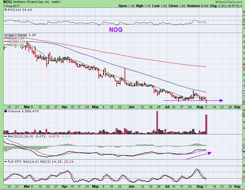 NOG – Someone wrote to me Monday and mentioned that they owned NOG. They wondered if the slam down on Monday was rendering it hopeless.