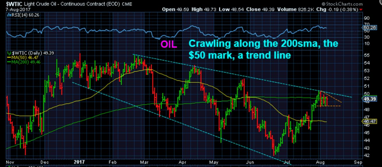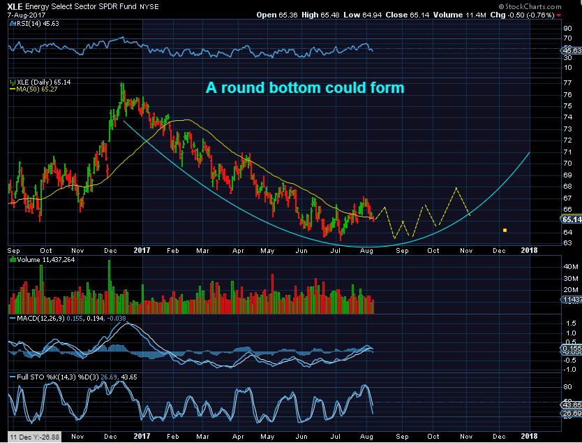 XLE- SO I would have to imagine that a higher low if Oil did sell down to the 50sma could still give us a round bottom. The reason for this may simply be that some Oil / Energy stocks are doing well after earnings, others are not ( see PACD, GST).
