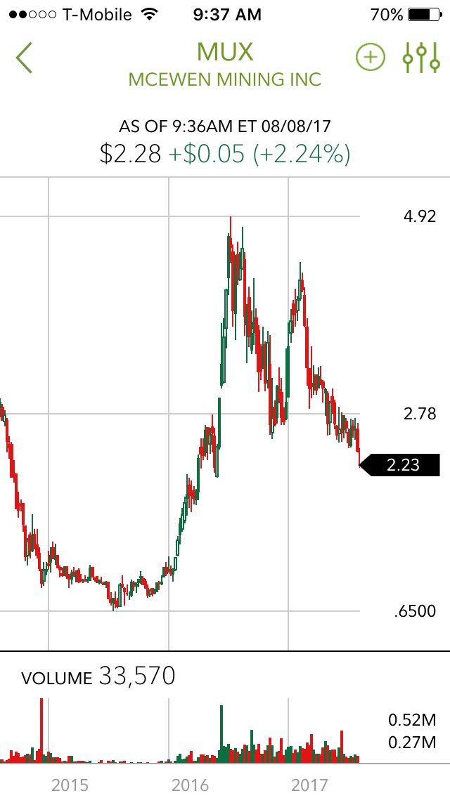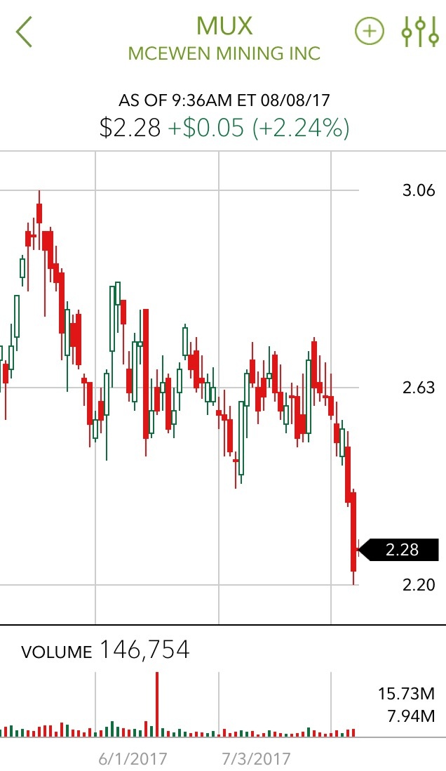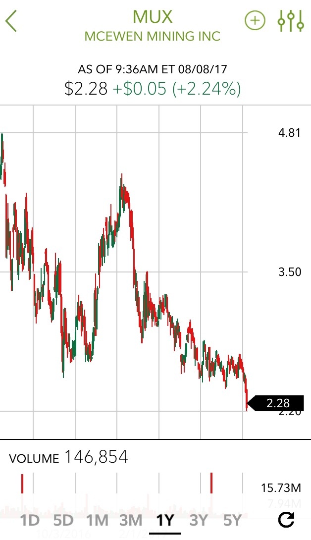 I have a bunch to and it is really frustrating…but I trust McEwen because he has been so successful before, owns 1/4 so has skin in the game, and has a love for the mining game. Eventually, I think it will go up.