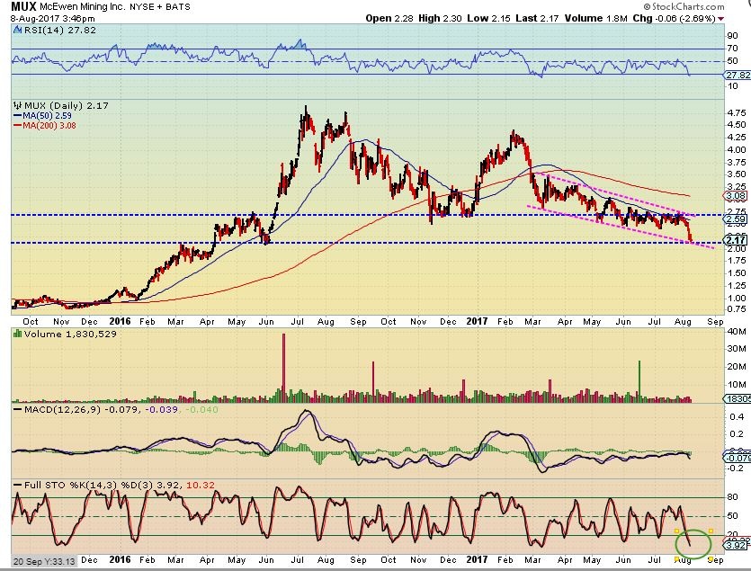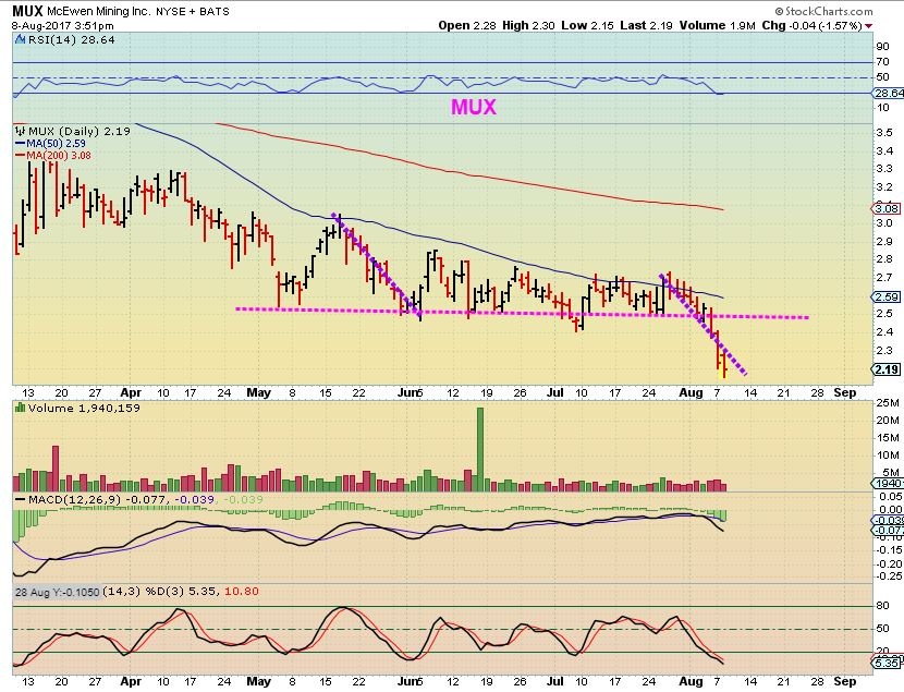 MUX may be almost done with this move lower, but if GOLD sells off further into a DCL, might it get dragged down a bit more? I would think so.