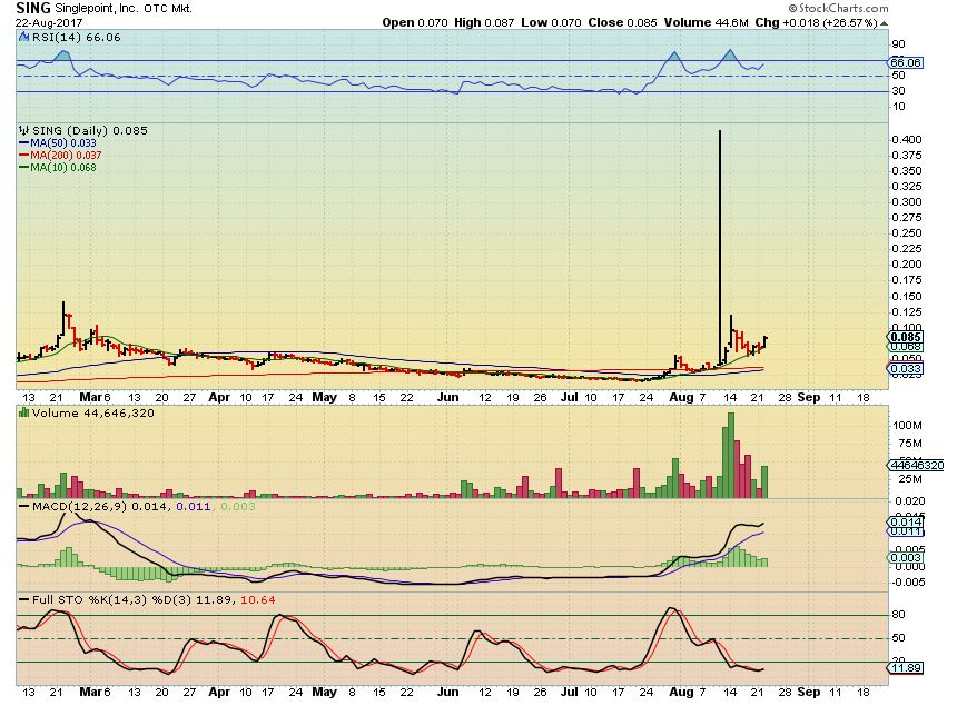 I don’t think I would have heard about SING without your post. I did a little research on the cryptocurrency / MJ effort by them and the dip looked good. The chart looks very good, but it has been basing for years at pennies, so I am cautious. It is a lot like the MJ stocks themselves. Great rallies and then the drop is a bit scary 🙂