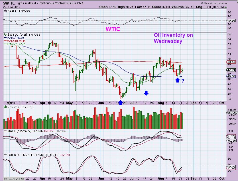 WTIC – The parameters for Oil have not changed from prior reports. The inventory report is released on Wednesdays, so we may see a directional move today. Today could be day 4.