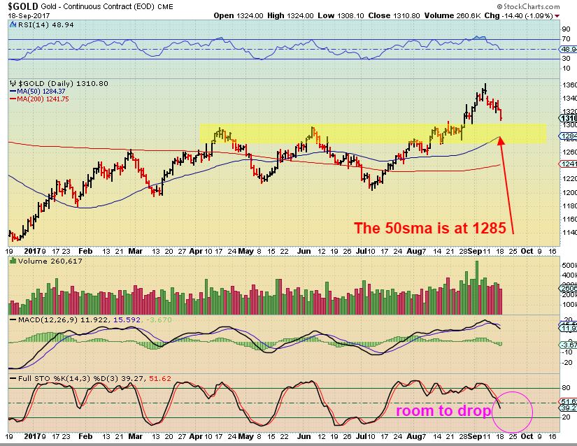 On Sept 11th over a week ago – I pointed out that Gold could drop to the break out as a back test ( or even the 50sma has been pointed out as a back test, but it would be rising and might come higher to meet price). I said that this drop could happen going into the Fed Week or Fed Wednesday.