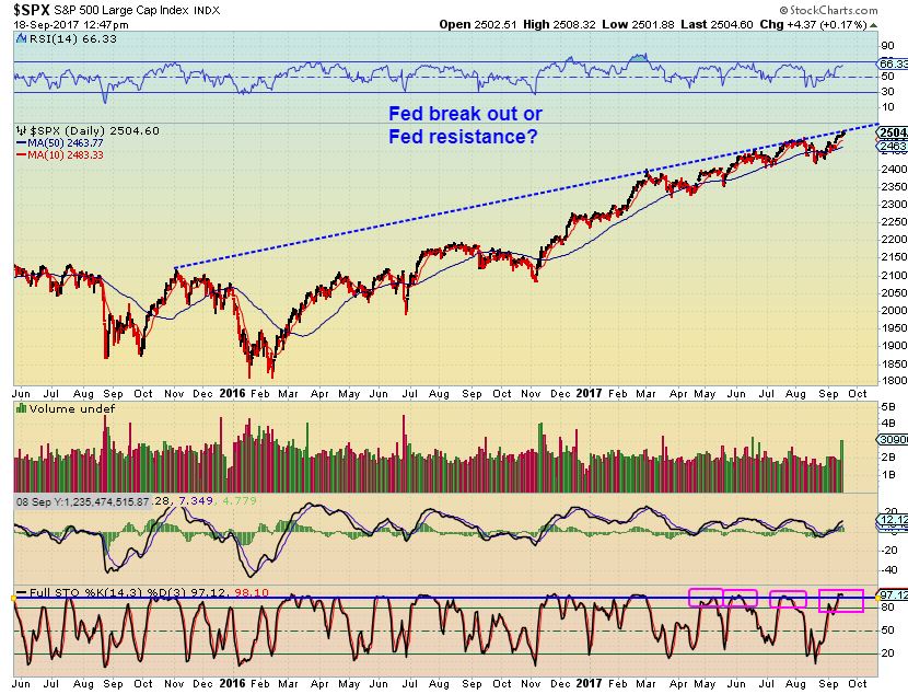 SPX – I do just want to mentioned that Pre-Fed, the SPX is again at a possible resistance area. Things look bullish in the General Markets, but the SPX is at a nice round number ( 2500) and often the markets stall and bounce around at round numbers, people sell at round numbers. So do we break out or break down after the Fed Decision? We should know soon enough. At this point, we have been seeing things as a ‘long’ since the lows in Mid August. I personally did not take this trade in UPRO or TQQQ.
