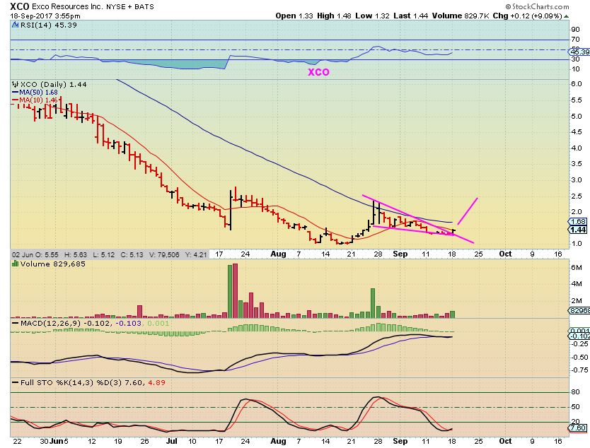 XCO – A NATGAS company attempting a break out. A buy with a fairly tight stop could be used.