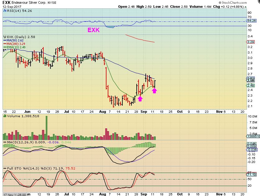 EXK – EXK has been dropping, but notice that it really only went sideways so far. It is encouraging to see that even the Miners that got crushed are not dropping sharply by recent selling.