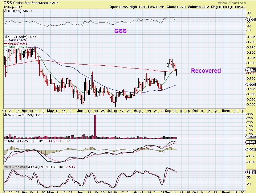 GSS – GSS lost the 200sma and then closed back on it by the end of the day. I recommended this one a while back when it back tested the 50sma. It looks to be forming a cup.