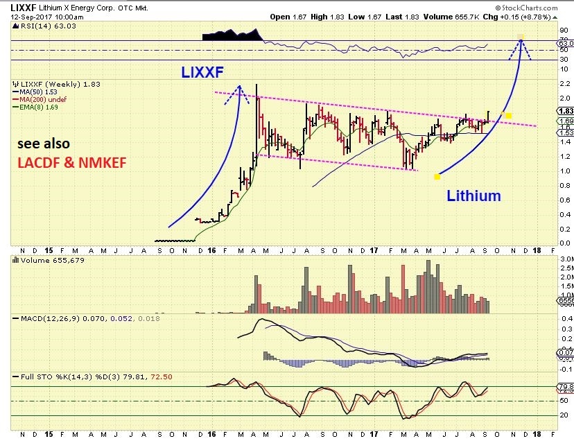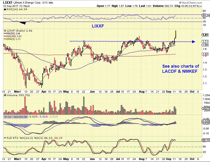 LIXXF in a huge resistance area right now, looking for a break out to buy. Looks like Lithium will be a big winner in the years ahead as many car companies switch to all electric to meet regulations. China and Europe leading the way to all electric, not sure where the US line in the sand is?