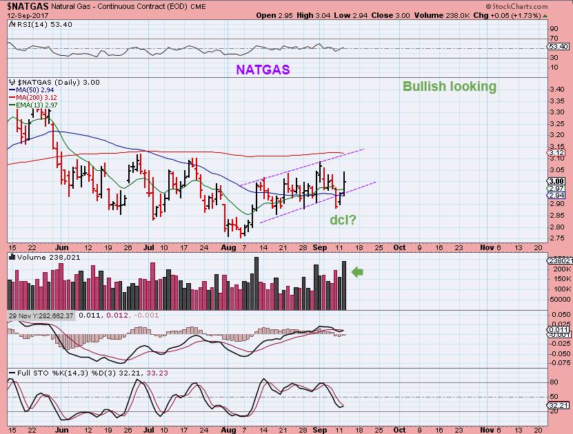 Now that both OIL & NATGAS seem to have their lows in place, I will, at the end of this report, entertain some ‘bottom fishing’ set ups in the Oil & Gas Sector.