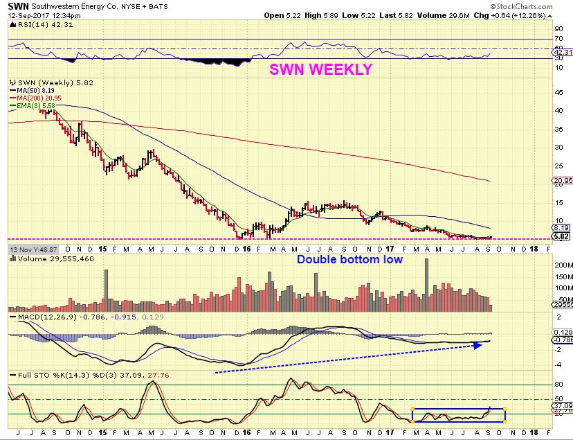 SWN– This is a double bottom low, and the last time it was down here, it did triple from $5 to $15.