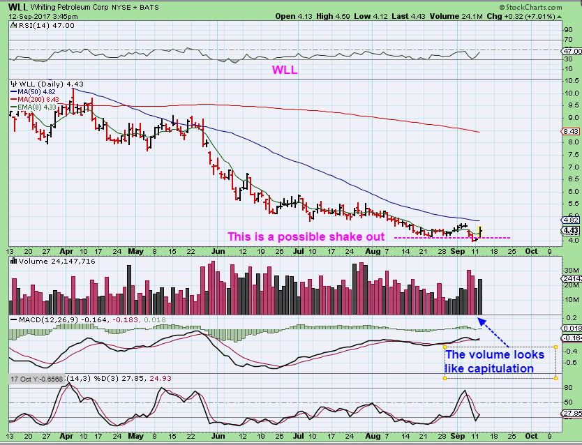 WLL – This actually closed up over 8% and is breaking higher out from what looks like a high volume capitulation type shake out. It would be bought here with a stop under recent lows.