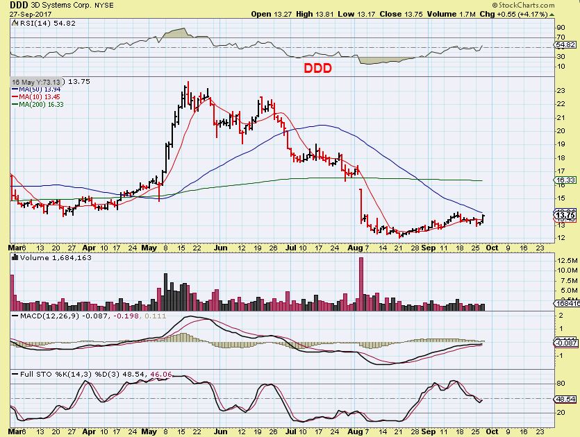 DDD – Basing out under the 50sma, and trying to break higher, this could run to the 200sma.