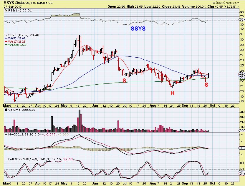 SSYS – This looks like a quick shake out of the 200sma, but now formed an inverse H&S supported on that 200sma.