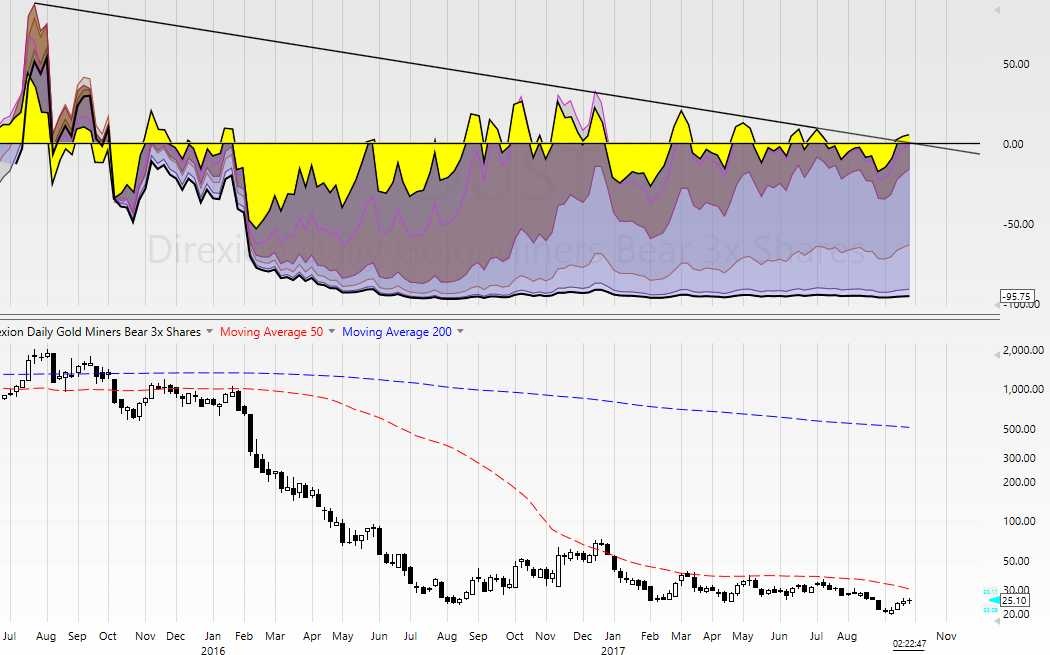 GDXJ – This also broke down below the 50sma and recovered on Aug 8th and ran higher. It may now be at a support (again). I bought leverage for an average price of just under $19 JNUG. I am still in it for now, expecting a dcl and a bounce. You can see on this chart that I bought in this area, but leverage exaggerates the move, and I have to allow deeper losses at times ( Stops). I am OK with that as this plays out. Leverage is a personal choice, I have not ‘recommended’ it, I usually recommend caution at this point.