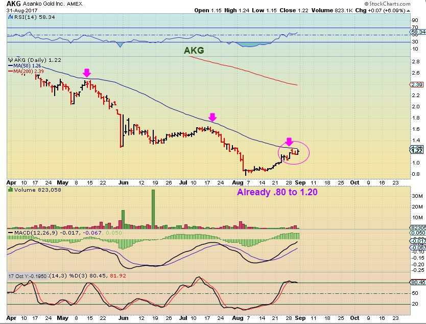 AKG- So far, that was a pretty big move already, but it looks like it has a lot further to go in a bull market. It pushes against the 50sma currently