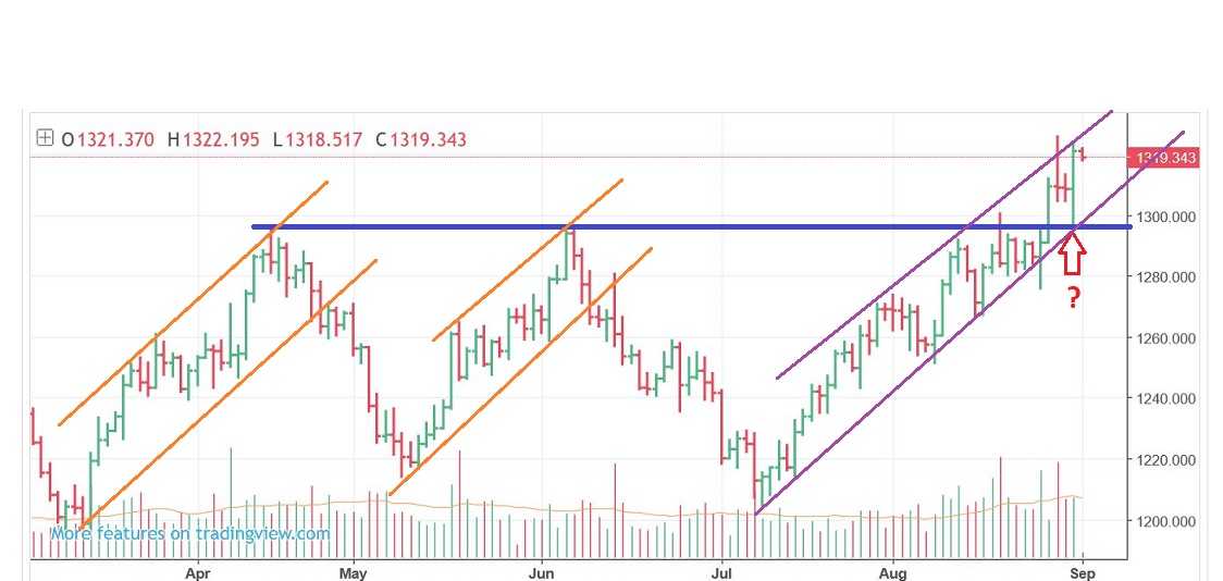 On the daily chart, Gold is in an upward sloping channel, but is already at the top again.