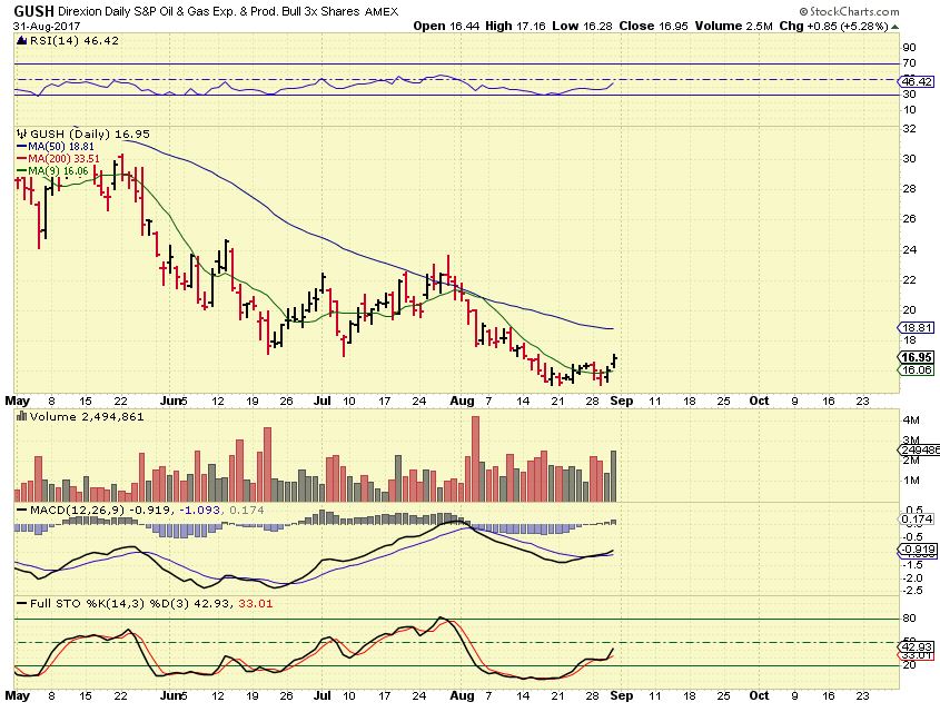 GUSH – I pointed out this low risk entry (in a very high risk 3x etf) for GUSH on Tuesday just under $16.