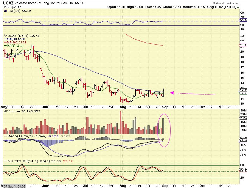 UGAZ – And yesterday, after the NATGAS inventory report was released, a Nice pop came into UGAZ & BOIL too.