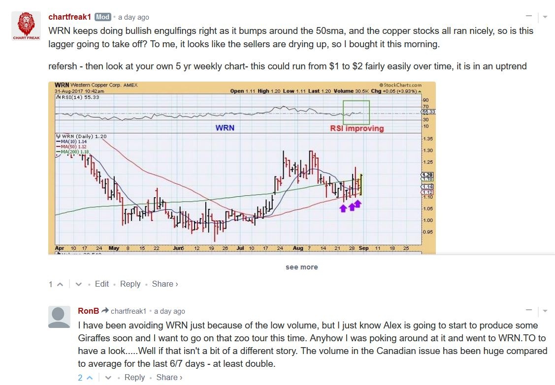 My post was late yesterday, so just in case someone did not see it, I went to the Canadian listed version of WRN and found much higher volume for 6 of the last 7 days – like double and yesterday was triple. It is being traded in dark pools which is a bit surprising for a low volume low price stock, but my order did not show up on the charts until well after the fact.