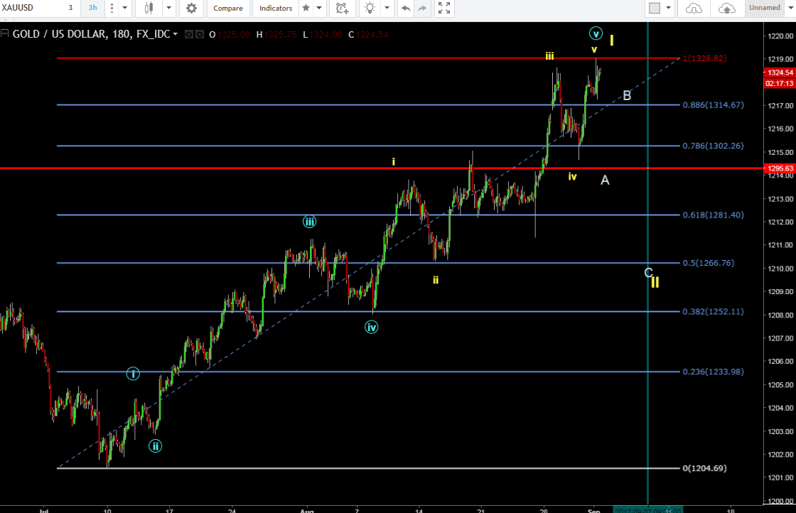 Edit: Gold futures hit your first target of 1333 this morning, Alex