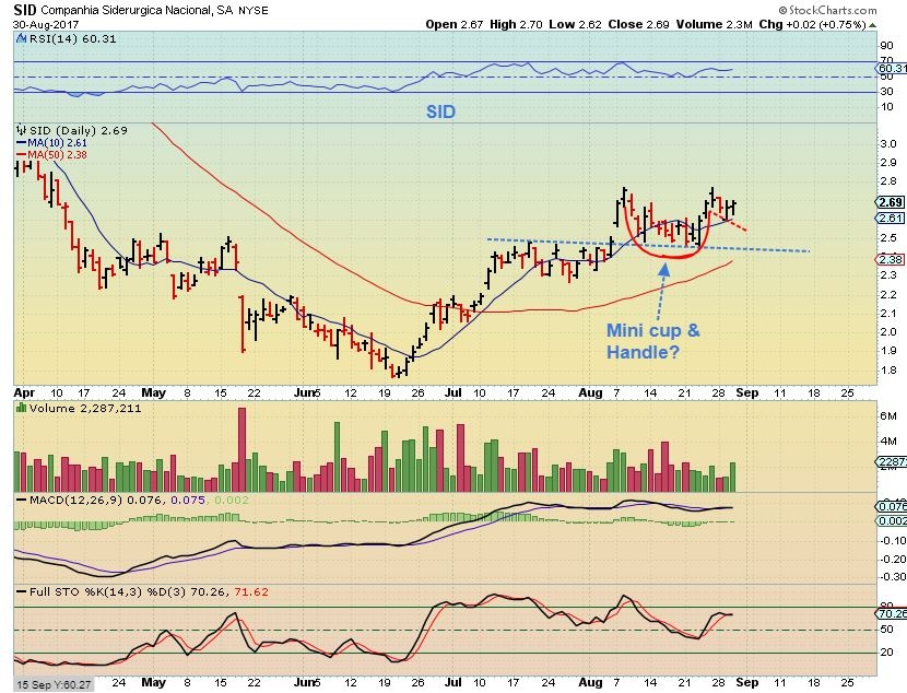 CDE – CDE has broken above the 50sma and pushed against the 200sma and then pulled back. I would buy it above the 50sma, and also if it successfully breaks above the 200sma. You can see huge potential in this one if it gets going again.