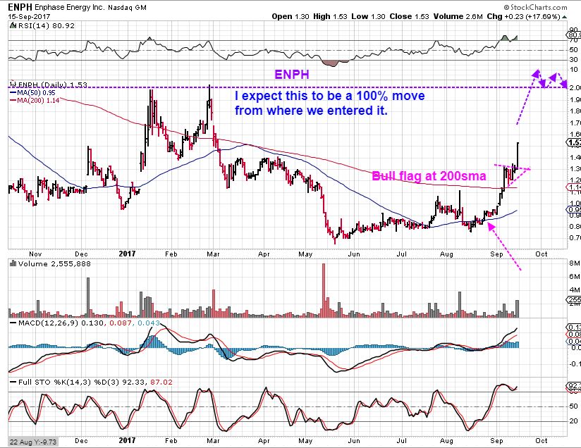 The final chart in the report was added by email request after I released this report, so you will see ENPH in the report now… Question was, “I bought this when you did, where do I sell. I sold 1/2 at the 200sma”.