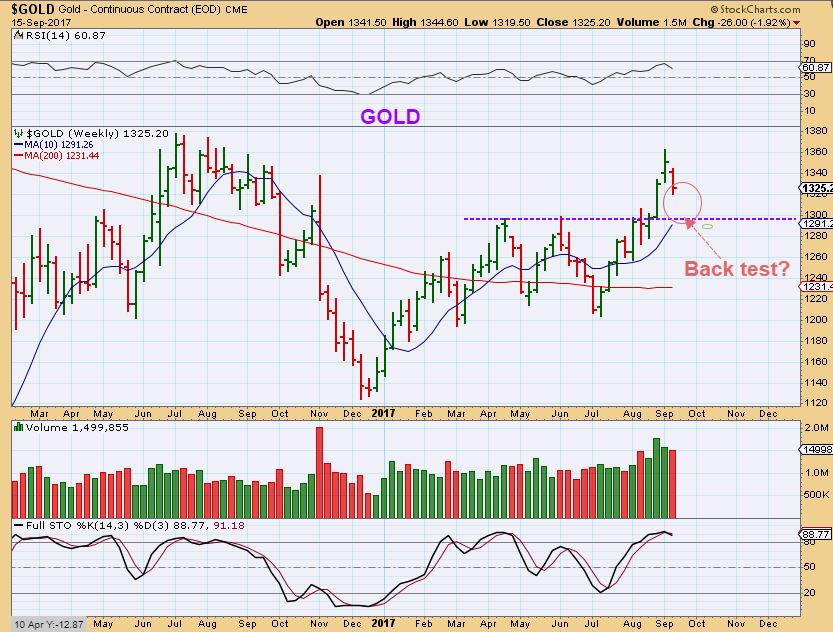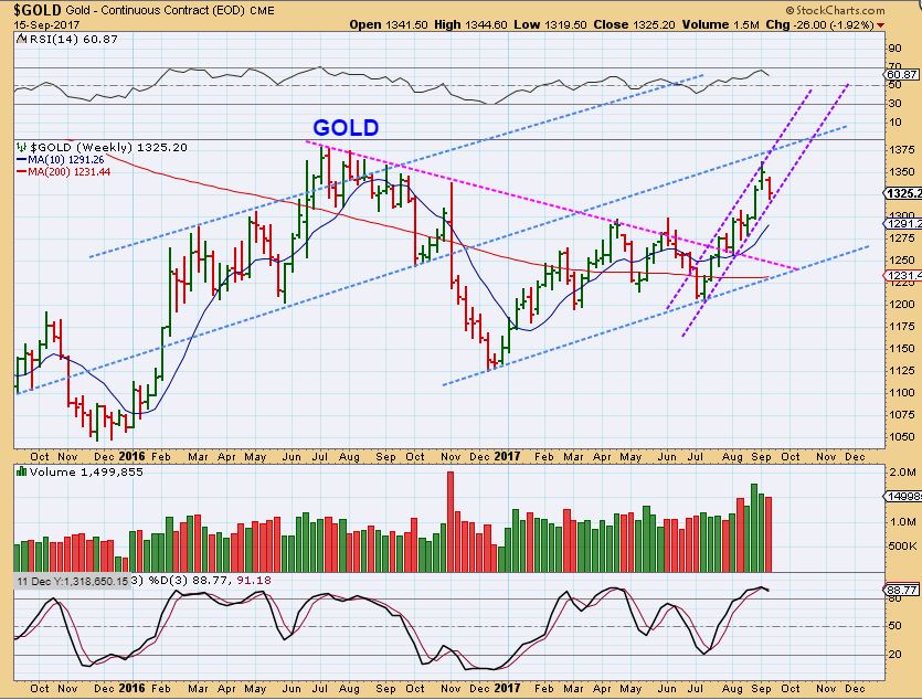 GOLD WEEKLY #2– A basic technical analysis chart still shows a back test of the $1300 area would be a normal 2 week sell off to the 10 MA weekly. That would be a drop during FED Week, either before or after the Fed Mtg. Feb had a 2 week sell off, and April had a 2 week sell off.