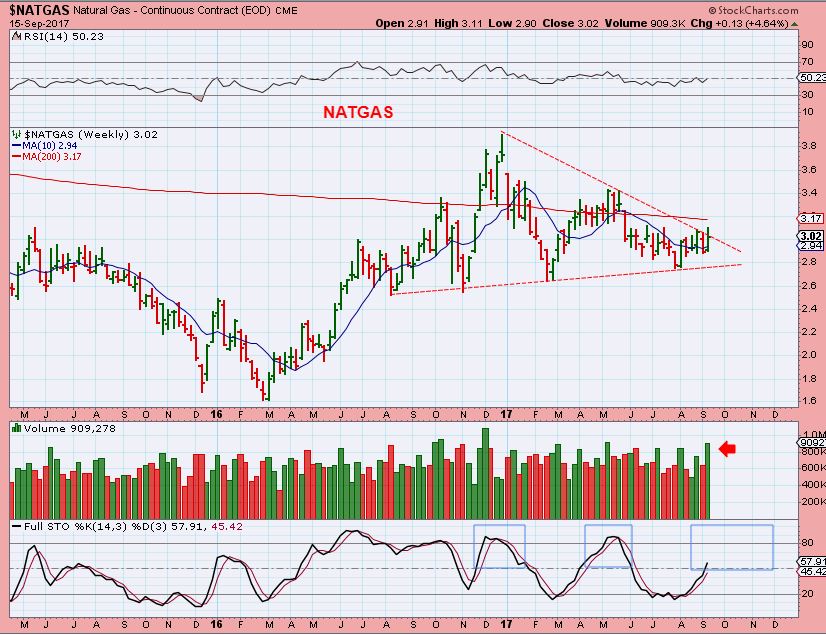 NATGAS – The NATGAS CHART has formed a large triangle consolidation. It looks bullish on the daily charts, so I would expect it to move higher over time. That finally places OIL & GAS stocks in a bullish light.