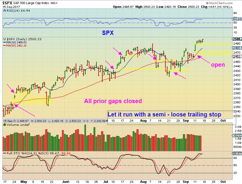 SPX – We have a couple of open gaps on the SPX and I do think that these will fill as the markets drop into the next dcl. Notice how prior gaps have filled. These markets can go higher into ( This is just a Guess ) Day 25 or more, so things could get interesting after the Fed decision.
