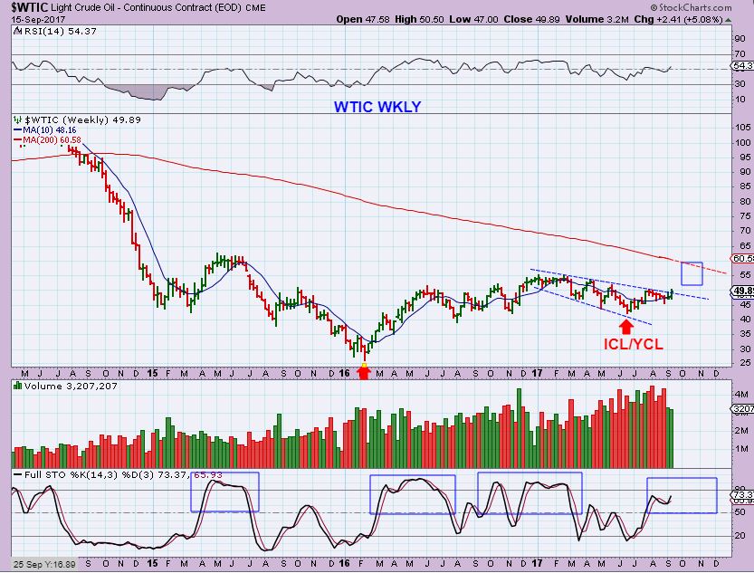 WTIC – I’ve been discussing Oils bullish set up with an ICL / YCL (Yearly Cycle Low), and now a DCL in place. Oil is breaking higher on the weekly chart too.
