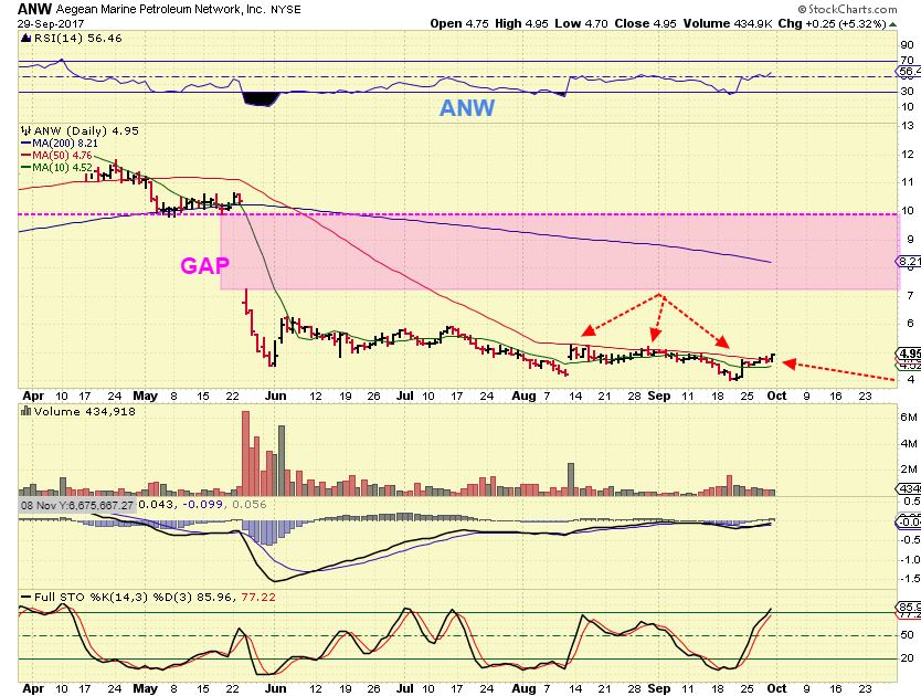 ANW – I am eyeing this $5 stock as a possible long base that just broke above the 50sma after a long crawl along it. I almost bought this Friday late in the day, but I wanted to read up on that huge GAP DOWN in May and see why that happened. I still haven’t had time to do that this weekend.